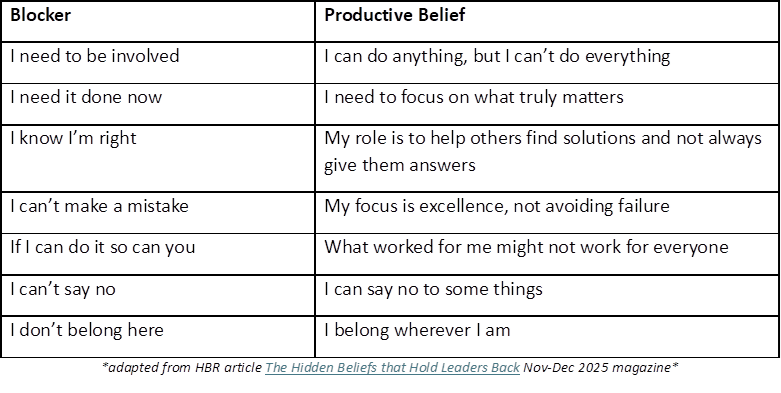 A recent Harvard Business Review article titled “The Hidden Beliefs that Hold Leaders Back” by Muriel M. Wilkins, examined many of these same issues. Ms. Wilkins calls these hidden beliefs blockers, which are ingrained habits or perceptions that have been crowned as facts. Here are the seven she claims are most common and how to turn them around to productive beliefs. It appears to me that several of these may be born of the professional requirements of excelling in a workplace, standing out, taking more on personally to showcase talents, confidence born of past success, etc. That being said, while understandable, leaders are now in a different position with different requirements. Rather than being independent performers, they must model behavior, offer insights, and provide motivation for others to excel rather than expect to do it all themselves. Are any of these blockers in your mental vocabulary? If so, understand why you may feel that way, and determine a new more productive view of your mission.